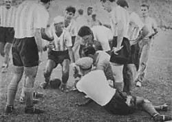 In the 1945 Copa Roca match that Brazil won 6–2, young Brazilian Ademir de Menezes fractured Argentine José Battagliero's leg.[36] Though it seemed to be only an unfortunate accident, the game was played roughly and sometimes violent.