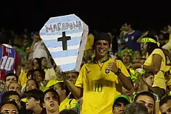 Among the elite group of players football fans consider as contenders for the title, the best player of all time, Brazil's Pelé and Argentina's Diego Maradona are amongst the most famous.[49][50] Some of their countrymen also feature regularly in such debates. The next most notable pair are perhaps Garrincha (Brazil)[51] Lionel Messi (Argentina) and Alfredo Di Stéfano (Argentina).[52] The most dominant figures from the two countries in the modern game are Neymar (Brazilian) and Messi, who both played for Barcelona and Paris Saint-Germain. Both Pelé and Maradona have declared Neymar and Messi their respective "successors".[53][54]