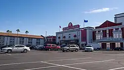 Area residents had protested the construction of Arizona Charlie's, arguing that it would lead to increased crime and traffic in the neighborhood.[1][6] A hotel expansion, consisting of three six-story towers, was approved by the Las Vegas City Council in 1991. Residents were also critical of this plan,[6][7] which would require shutting down the adjacent Evergreen Avenue, just south of Arizona Charlie's. Residents opposed the street's closure, leading to a lengthy battle with the hotel-casino.[8] In 1993, the property reduced its expansion plan to a single new tower, standing seven stories.[9] The expansion project cost $38 million,[10] and necessitated removal of the bowling alley. During this time, casino operations continued in a temporary tent that contained 375 slot machines.[11] The expansion opened in 1994.[1]