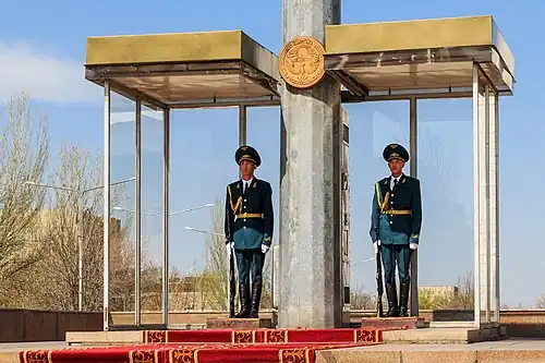 The National Guard of Kyrgyzstan was founded on December 6, 1991, and took their first oath July 20 the following year.[15][16] In 2014, the Internal Troops were absorbed into the National Guard as a result of the ongoing military reforms. This would remain this way until September 2018 when they were separated once again.[17]