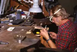 Arne Blomberg, was born in 1930 in Gothenburg, Sweden. He started off by studying at Valand School of Art and continued later on at the Goldsmiths´Company Trege where he got a journeyman exam, and followed up by an engineering degree and a master's degree as engraver. At the age of 30, Blomberg bought a farm outside of Uddevalla, a small town on the west coast of Sweden. To make a living he tilled the soil during the summers and designed and manufactured jewelry during the wintertime. After ten years he bought another farm on Öddö, an island close by. Shortly thereafter he took over the local jewelry shop, Krohn Jewel in Strömstad. After ten years on the west coast Arne Blomberg left Sweden and moved to Idar-Oberstein, also called the precious gemstone metropolis in Germany. After a few years he moved on to Spain both to live and work until his death in 2006. He died at the age of 76.