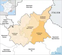 The borders of the arrondissements of Alpes-de-Haute-Provence were modified in January 2017:[3]