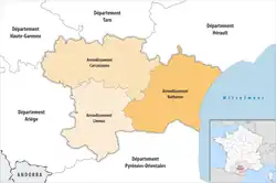 The borders of the arrondissements of Aude were modified in January 2017:[3]