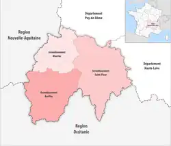 - Arrondissement of Mauriac, (subprefecture: Mauriac) with 55 communes. The population of the arrondissement was 25,085 in 2021.
