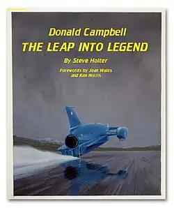 About that time his interest in Land and Water Speed record breakers came to the fore. His first book jacket cover appeared on the cover of Power Boat Speed by Kevin Desmond which chronicled powerboating from 1896 onwards[9] One of his paintings appeared in the Italian version of Pilote Che Gente by Enzo Ferrari[10] and just before his death in 1988, Commendatore Ferrari presented Benjamins with a signed copy. In 1990, and with the full approval of Ken Norris, who designed the Bluebird car and boat in which Englishman, Donald Campbell broke many speed records, Benjamins set up Bluebird Publications to issue many of his record breaker prints.[11][12] Other book jackets followed. Leap into Legend by Steve Holter,[13] Race against the Odds again by Kevin Desmond.[14] and "The British Are Coming, British Record Breaking and the people that made it Happen" by Mike Varndell (.[15] Benjamins has also evoked historic aviation scenes.