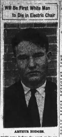 Arthur Hodges was executed on December 18, 1914. His execution made him the first white person to be executed in the electric chair in the state and only one of 57 total (constituting 29 percent of the executions in Arkansas' electric chair).[6] Hodges spent his last hours praying with a group of religious advisors, singing hymns, and being baptized; he also arranged for some of his affects to be sent to a sister who lived in Texas. Religious advisors who attended to Hodges in his last moments stated that Hodges remained hopeful until the last moment for a delay in his execution; when the Arkansas Supreme Court declared their refusal to intervene and permitted Hodges' execution to move forward, Hodges remarked to a reporter from the Arkansas Gazette, "I won't have any girl now, will I?"[1][2]