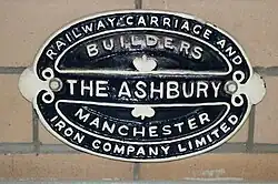 The Ashbury Carriage and Iron Company Limited was a manufacturer of railway rolling stock founded by John Ashbury in 1837 in Commercial Street, Knott Mill in Manchester, England, near the original terminus of the Sheffield, Ashton-under-Lyne and Manchester Railway. It moved to Ashton Old Road, Openshaw in 1841 and became a limited company in 1862 as The Ashbury Railway Carriage and Iron Company Limited. Ashburys railway station is named after the company in this location. After the founder's death in 1866, the company was owned by his son, James Lloyd Ashbury. In 1898 the works covered about 20 acres (8.1 ha) and employed about 1,700.[1]