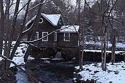 - a dam, a rubble-stone dam from mid-19th century at the site of the Orando Perry grist mill