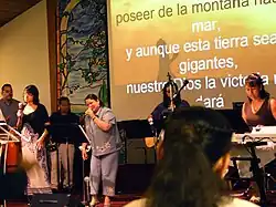 While blacks were largely excluded from the AG until the 1960s, though some served as missionaries and evangelists,[59] the denomination's work among Spanish-speaking people has a long history, first sanctioned explicitly in 1918. Hispanic outreach became independent of the Foreign Missions Department in 1929 when the first Latin American District was established. By the end of World War II, the AG's Latin American constituency formed the largest Protestant presence among Hispanics in the United States.[60] The AG also focused on major European immigrant populations, but as later generations assimilated into American culture, these separate European segments were absorbed into the regular geographic districts.