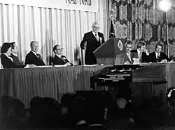 Despite Pentecostalism's origins in a racially inclusive revival, it accommodated itself to America's culture of racial segregation rather early; the Assemblies of God was no different. As early as 1915, an executive presbyter wrote in an article for the Pentecostal Evangel that segregation was "ordained of God"; however, it was not until 1939 that the General Presbytery enacted a policy prohibiting the ordination of African Americans to the ministry.[56] Districts were still allowed to license African Americans to preach but only in the district where the license was issued. Black Pentecostals seeking ordination were referred to "one of the colored organizations". This was especially true of the Church of God in Christ,[43] which, despite the fact that it predates the Assemblies of God, was seen as a "younger sibling". It was not until 1962, under the leadership of General Superintendent Thomas F. Zimmerman, that the denomination finally began issuing ordinations without regard to race.[57] Three years later the 1965 General Council adopted a resolution affirming the goals of the civil rights movement and condemning racism and discrimination.[58] By the 1970s, there was renewed focus on inner-city evangelism and integrated urban efforts.