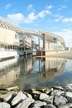 The Astrup Fearnley Museum of Modern Art is a privately owned contemporary art gallery in Oslo in Norway. It was founded and opened to the public in 1993.[1] The collection's main focus is the American appropriation artists from the 1980s, but it is currently developing towards the international contemporary art scene, with artists like Jeff Koons, Richard Prince, Cindy Sherman, Matthew Barney, Tom Sachs, Doug Aitken, Olafur Eliasson, and Cai Guo-Qiang. The museum holds 6-7 temporary exhibitions each year. Astrup Fearnley Museum of Modern Art collaborates with international institutions and produces exhibitions that travel worldwide.[2] In 2012 the museum moved to two new buildings designed by Renzo Piano in Tjuvholmen.