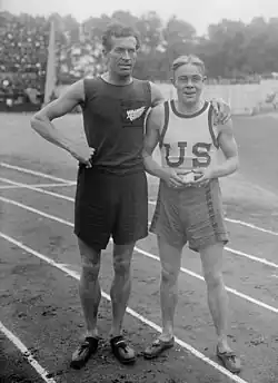 The foremost track athletes at the games were Charley Paddock, who won a 100 metres/200 metres sprint double, and Robert Simpson, who completed a similar feat in the hurdles. Frenchman Jean Vermeulen won a long-distance running double by taking the cross country and modified marathon titles, despite having a crippled arm from the war. The 200 metres hurdles event was won by Simpson in a time just one fifth of a second short of the world record at that time, even though the athletes had the disadvantage of one of the hurdles being misplaced by a margin of two metres. The American's winning time of 1:30.8 in the 4×200 metres relay was declared a new world record at the time, but was later discovered to be inferior to a time run at the Penn Relays one month earlier.[2]