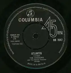 "Atlantis" is a rock music instrumental by British group the Shadows, released as a single in May 1963. It spent 17 weeks on the UK Singles Chart, peaking at number two for two weeks.[2]