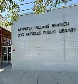The Atwater Village District is served by the Atwater Village Branch of the Los Angeles Public Library. It is located at 3379 Glendale Boulevard, east of the Los Angeles River and Interstate 5.[14]