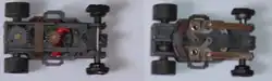 | 1974 | AFX Magna-Traction | Similar to original A/FX, but with taller magnets extending through bottom of chassis, and motor brushes that rest on springs instead of spring plates on bottom of chassis. |