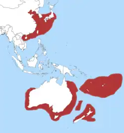 The Australasian snapper (Pagrus auratus) or silver seabream is a species of porgie found in coastal waters of Australia, Philippines, Indonesia, mainland China, Taiwan, Japan and New Zealand. Its distribution areas in the Northern and Southern Hemispheres are disjunct.[2] Although it is almost universally known in Australia and New Zealand as snapper, it does not belong to the Lutjanidae snapper family. It is highly prized as an edible fish, with a sweet sea taste and a firm texture.