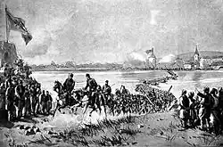 The original occupying force, the 13th Corps under General Josip Filipović, crossed the river Sava near Brod,[15] Kostajnica and Gradiška. The various Abteilungen assembled at Banja Luka and advanced down the road on the left side of the Vrbas river.[16] They encountered resistance by local Muslims under the dervish Hadži Loja, supported (almost openly) by the evacuating Ottoman Army troops.[17] On 3 August a troop of hussars was ambushed near Maglaj on the Bosna river, prompting Filipović to institute martial law. On 7 August a pitched battle was fought near Jajce and the Austro-Hungarian infantry lost 600 men. Most of the men that fought in the battle were from the Carniolan XVII infantry division.