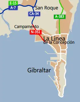 La Línea de la Concepción - Gibraltar - airport continues along the A-383 road