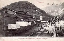 In 1876, the station of Carrara became passing, with the opening of the railroad Marmifera heading toward the quarries of marble of Colonnata, which exploited the pre-existing connection to transfer the goods to the station of Avenza and, hence, to the port of Carrara.