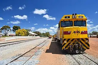 The Avon Yard to Mullewa railway line is a 429-kilometre (267 mi) long railway line operated by Arc Infrastructure in the Mid West and Wheatbelt regions of Western Australia, connecting the Avon Yard at Northam with Mullewa. The 104-kilometre (65 mi) section of the railway line from Perenjori to Dalwallinu is, as of 2024, not in operation, having closed in the late 1990s, while the sections north, Perenjori to Mullewa, and south, Dalwallinu to Northam, are.[1][2][3][4]