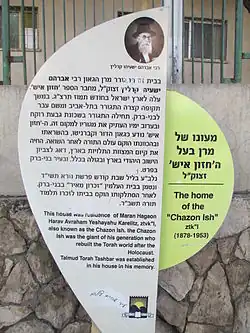 - ^ Hazon Ish Heritage House Visitors Center