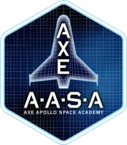 ![]() ![]() Above: Logo of the Axe Apollo Space Academy Below: Axe Apollo Space Academy candidate astronauts with Buzz Aldrin | |
