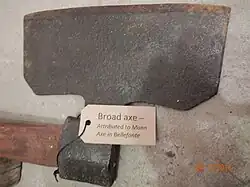 - ^ Fagley, at 41. Joseph Mann died at age 70 in East Weymouth, MA on August 20, 1929. The last surviving son of Robert Mann, William H., died at age 72 in Lock Haven, PA on August 19, 1935. Percy Mann, son of James, died at age 73 in Lewistown, PA on August 12, 1949, and was probably the last of the family to have been directly involved in axe-making. Descendants of James Mann donated a number of family artifacts to the Mifflin County Historical Society, which are on display in its museum.