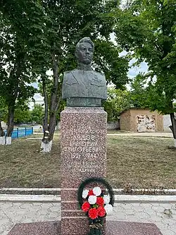 The name of the Bălți-Leadoveni airport comes from the old name of the former village of Leadoveni (Corlăteni), into which the villages Singureni and Corlăteni were merged in 1966. The name Leadoveni was given in 1945 to the village of Corlăteni (also called Strymba) in honour of Grigori Lyadov,[36] who, during an aeroplane crash, steered the falling plane away from the houses in Singureni and Corlăteni villages. A monument has been erected at the site of his death in Singureni. The Balti Leadoveni airport is now located on the territory of the village of Corlăteni. During World War II, the territory of Singureni village was the main military airfield in Moldova: the Bălți-Singureni airfield. It was home to IAP 55 (later named IAP 16) from Kropyvnytskyi with 5 advanced airfields in the Moldavian SSR and the Ukrainian SSR.[37][38] Also during World War II, Kampfgeschwader 27 and Kampfgeschwader 51 from Landsberg am Lech formed from Kampfgeschwader 255[39] were stationed at the airfield in Singureni.