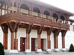 The haveli, built in a traditional haveli style, has a courtyard architectural style that was originally developed in 17th century western India, and serves as a cultural center for the mandir. The traditional haveli design highlights specific architectural components like the façade, open courtyards, carved columns, arches, doors, windows, and balconies.[2][4]
