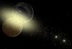 An artist's impression of two planets colliding in the system.