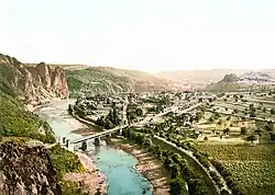 Bad Münster am Stein-Ebernburg (German pronunciation: [baːt ˈmʏnstɐ ʔam ˈʃtaɪn ˈeːbɐnbʊʁk]) is a spa town of about 4,000 inhabitants (as of 2004) in the Bad Kreuznach district in Rhineland-Palatinate, Germany. Since 1 July 2014, it is part of the town Bad Kreuznach. It was the seat of the former like-named Verbandsgemeinde, but not part of it. Bad Münster am Stein-Ebernburg was granted town rights on 29 April 1978[1] and is recognized as a mineral spring spa (Mineralheilbad) and a climatic spa (heilklimatischer Kurort). Today the "Spa" is famous for its clinics specializing in cardiological and orthopaedic rehabilitation. The many graduation towers form the largest open air inhalatorium in Europe.