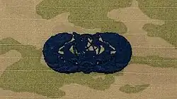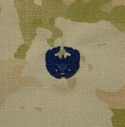 Current Space Force occupational badges are shared with the Air Force and come in the grades of basic, senior, and master or command. Space Force occupation badges are worn on the left side of the uniform in metal for the service and mess dress uniforms or embroidered in space blue on the OCP uniform. Space Force occupational badges are mandatory for wear.[3]