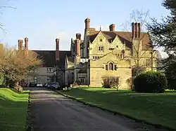 During World War II, the building became the headquarters of the Women's Land Army.[21] There are no known publicly viewable photographs of this huge operation. Personal accounts describe the influx of administrative workers, tables, desks and office supplies; and stables containing WLA uniforms and other distributable goods. The tennis courts became used for livestock.[22][23][24]