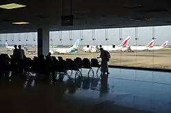 - Apron Bravo: It has eight parking bays, including four remote parking bays and four boarding bridge-equipped bays. It can simultaneously handle eight wide-body aircraft. The four remote bays will be converted into four Airbus A380-capable boarding bridges under the Stage II development project.