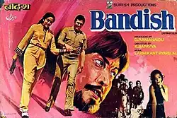 Bandish (aka Bandhish) (lit. 'Restriction') is a 1980 Hindi-language film directed by K. Bapaiah, starring Rajesh Khanna, Hema Malini and Danny Denzongpa.[1][2] The movie is a commercial attempt by D. Rama Naidu, who had earlier produced Prem Nagar with the same lead pair on 1974. The music is by Laxmikant–Pyarelal. The film was the 8th highest grosser of the year. The film was appreciated for its colorful locations and sets, and for its melodious songs and unique story. The film was a remake of the Telugu film Chilipi Krishnudu.