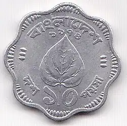 Ten paisa is a small denomination of Bangladeshi taka currency. The ten paise metal coin was first issued in 1973.[1] Ten paise is not currently in use in Bangladesh.