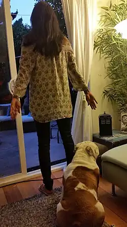 There is some evidence that humans can determine the suspected emotions of dogs while listening to barks emitted during specific situations. Humans scored the emotions of dogs performing these barks very similarly and in ways that made sense according to the context. In one example, when subjects were played a recording of a dog tied alone to a tree, a situation in which one could infer that the dog would be distressed, the human listeners tended to rank the bark as having a high level of despair. Some suggest that this may be evidence that dog barks have evolved to be a form of communication with humans, since humans can determine a dog's needs by listening to their vocalizations.[13] Further studies have found that the acoustic structure of a bark "[varies] considerably with context."[14] These studies suggest that barks are more than just random sounds, and hold some communicative purpose.