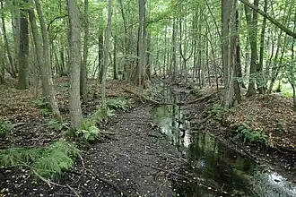 The Gorzowska Primeval Forest, also known as the Barlinek Primeval Forest, is a large forest complex extending mainly on the outwash plain, made of 12 thousand. years ago, by the waters flowing out of a melting glacier.[1] The surface of the sander is not flat, it is cut with gutters and depressions.[2] The richness of the nature of the Barlinek Forest decided about the creation of the Park. The area of the Park, even though it covers only about 40% of the area of the Forest, is representative of it.[2] Forests dominate here, covering about 81% of the area.[1] The second important element of the landscape are numerous lakes. About 700 species of vascular plants, 140 species of lichens, and over 100 breeding species of birds have been found in the Park.[2]