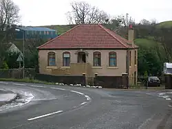 The village that developed had a population of 300 in 1876 and 600 in 1951, when the threadmaking industry had just ceased, although the workers still lived in company houses and were transported daily to the threadmaking factory at Kilbirnie. This mill was founded in the mid-19th century to make linen thread, much used at the time for boot and shoe making, and for sailmaking; an offshoot of the much larger linen thread mills at Kilbirnie. The largest of the mill buildings was a three-storeyed, flat-roofed mill, with a fireproof interior with brick arches on cast iron columns. In front is a section of a range of single-storeyed, north-lit sheds. In 1965 the buildings were being used as a fertiliser factory. The mill buildings have been demolished, but the offices still survive.[2]