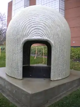 Barrow is a public sculpture by an American artist Jill Viney. It is located on the Indiana University-Purdue University Indianapolis campus, which is near downtown Indianapolis, Indiana. The sculpture is just north of the Herron School of Art on New York Street. This sculpture is made from a double wall of fiberglass encasing a sheet of metal meshing. Barrow measures 8-foot (2.4 m) and 8-foot (2.4 m) in diameter. Barrow was installed at IUPUI at noon on 7 May 2008.[1]
