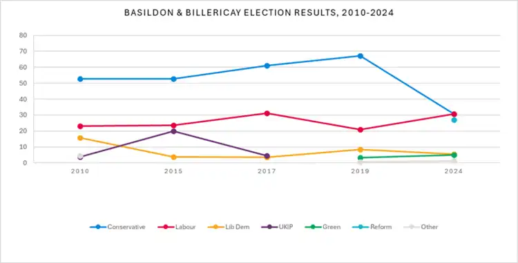 - ^ "Seat Details - Basildon and Billericay". www.electoralcalculus.co.uk. Retrieved 14 January 2025.