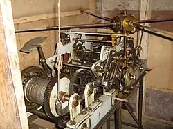 The clock rings every fifteen minutes, with its own bells for such purpose. The mechanism of the clock automatically sounds the bells by pulling ropes which in turn move hammers to strike the bell.