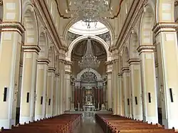 The central nave features four large crystal chandeliers, 3.2 metres (10 ft) high and 2.3 metres (7.5 ft) wide which were purchased and installed between 1959 and 1960 by Presbyter Efraím Jiménez, following a demonstration by a delegate from the lamp seller.
