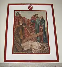 Some of the first representations of the passion and death of Jesus Christ in the church of Our Lady of Mercy were the 50 x 60 cm oil paintings. They were obtained by Bárbara Palacio of Mejía, aunt of Father Benedicto Soto, and donated to the parish, which in turn donated them to the chapel of the Pontifical Seminar of Missions where they still remain.[8] This painting was canonically erected by J. Buenaventura Marín on 7 October 1903, with the priest and vicar Emigdio Palacio bearing witness.[8]