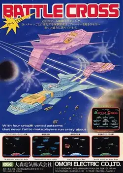 Battle Cross is a shoot 'em up released in arcades by Omori Electric (also known as Omori Electronic) in 1982.[1] The player controls a fighter spacecraft by moving around the screen and shooting enemies. In 1984 Sony published a version for the Sony Hit-Bit 75 MSX computer.[2]