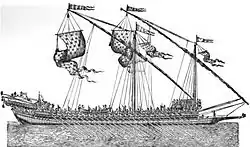 The Battle of Pantelleria (1586), also known as the Fight at Pantalarea[4] was a naval engagement during the Anglo–Spanish War off the island of Pantelleria on 13 July 1586. The encounter was between an English armed merchant fleet of five ships of the Levant Company in convoy under Edward Wilkinson and a fleet of eleven Spanish and Maltese galleys under Don Pedro de Leyva. The English managed to repel all the attacks and returned home unmolested.[5][6] Although minor, the battle had significant consequences in testing English armaments used against the Spanish Armada two years later when England was under threat of invasion.[7][8]