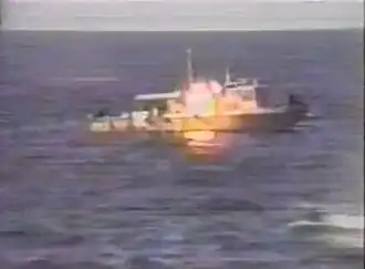 ![]() An Iraqi Navy ship being destroyed by naval gunfire. | |||||||||