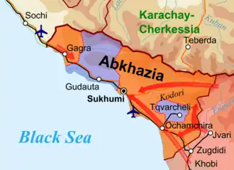 On 23 July 1992, the Abkhaz faction of Abkhazia's legislative body, Supreme Council, announced its sovereignty from Georgia. However, this decision was taken without necessary quorum as the Georgian faction of the Supreme Council had boycotted the session. To respond to this situation, Eduard Shevardnadze, new leader of Georgia, had interrupted his trip to Western Georgia, where the Civil War had been going on between his government and supporters of former President, Zviad Gamsakhurdia, ousted during the December 1991 Coup. Shevardnadze announced that the Abkhaz decision had been taken without consulting and considering the opinion of the majority of Abkhasian population.[4] According to 1989 census, 45.7% of Abkhazia's population was Georgian, 17.8% Abkhazian, while the rest were other ethnicities.[5]