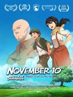 November 10th (titled Battle of Surabaya in Indonesia) is a 2015 anime-influenced Indonesian animated war drama film, produced by MSV Pictures. It is directed by Aryanto Yuniawan and produced by M. Suyanto.[3] It won Most People's Choice Award in the International Movie Trailer Festival (IMTF).[4]