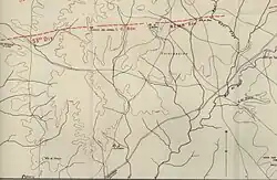Falkenhayn ordered a counterattack to be carried out on the morning of 3 November in a southeasterly direction to push the EEF off the Beersheba to Jerusalem road, and stop the threatened outflanking of the Ottoman left.[71] Ali Fuad commanding the Ottoman XX Corps assembled the 16th Division and the 3rd Cavalry Division along with part of the 19th Division, which arrived after a four-day march from Tel esh Sheria. However, the late arrival of the 19th Division, which did not begin to arrive until the afternoon, and Chauvel's advance, prevented this Ottoman attack from being launched.[72][i]